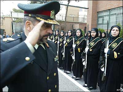 اسماعیل احمدی مقدم فرمانده نیروی انتظامی جمهوری اسلامی ایران در حال سان ديدن از زنانی که تازه از دانشکده پلیس فارغ التحصيل شده اند.