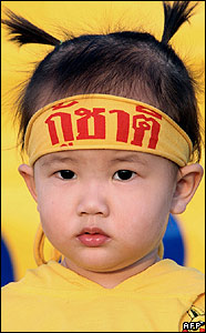یک دختر بچه تایوانی با سربند مخصوص، در جریان راهپیمایی ای که عليه نخست وزیر این کشور برگزار شده است.