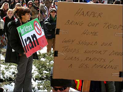 روز یکشنبه 18 مارس در چهارمین سالگرد آغاز جنگ در عراق، هزاران تن در تظاهرات ضد جنگ در خيابانهای تورنتو در کانادا شرکت شرکت کردند. شرکت کنندگان در این تظاهرات خواستار خروج نیروهای نظامی خارجی از عراق شدند و همچنین مخالف خود را با حمله احتمالی به ايران ابراز کردند.عکسهای زیر را پویان از این تظاهرات برای صفحه صدای شما فرستاده است.