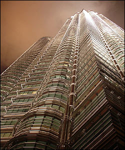 مالزی سال 2007 را به مناسبت پنجاهمین سالگرد استقلال جشن می گیرد. برج های دوقلوی پتروناس (که با نام KLCC نیز شناخته می شوند) از جمله نمادهای مهم این کشور به شمار می آیند و سالانه شمار زیادی جهانگرد از این برج ها دیدن می کنند. علی تهرانی، از خوانندگان صفحه صدای شما، این عکس ها را در طول اقامت ده ماهه خود در مالزی گرفته و در فتوشاپ کمی آنها را اصلاح کرده است.