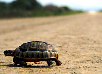 لاک پشت تنها، عرض جاده خلوت را در آفریقای جنوبی طی می کند. عکس از سپنسر میلسپ.