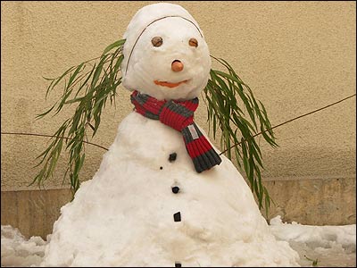 یک آدم برفی در مقابل خوابگاه مصلی نژاد دانشگاه صنعتی شریف در تهران، یکی از دانشجویان ساکن خوابگاه این عکس را فرستاده است.