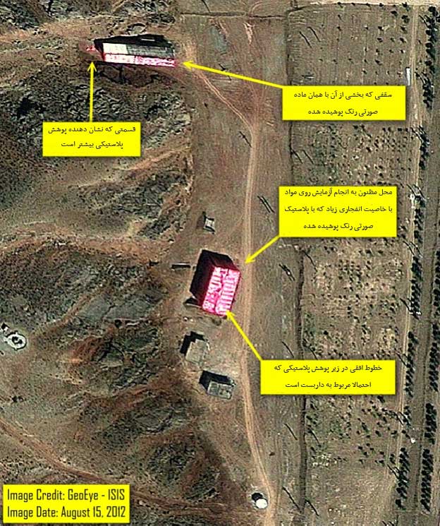 پژوهشکده غیر دولتی علوم و امنیت بین المللی، مستقر در ایالات متحده آمریکا تصاویری را منتشر کرده که نشان می دهد دو ساختمان مرکز پارچین توسط سطحی صورتی رنگ، پوشانده است