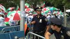 در هنگام سخنرانی رئیسجمهوری ایران، عدهای در برابر مقر سازمان ملل علیه او و حکومت ایران دست به تظاهرات زدند.