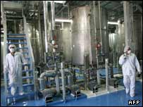 4 آوریل: ایران داشتن تاسیسات اتمی مخفی را تکذیب و اصرار کرد که بکارگیری آزمایشی اورانیوم غنی شده در اصفهان مغایر با تعهداتش در پروتکل الحاقی نیست. 9 آوریل: غلامرضا آقازاده، رییس سازمان انرژی اتمی ایران اعلام کرد که جمهوری اسلامی "داوطلبانه" تولید سانترفیوژ را متوقف می کند. 21 مه: ایران گزارشی با بیش از هزار صفحه را درباره فعالیتهای اتمی خود تحویل آژانس داد. اول ژوئن: آژانس ادعا کرد نشانه های تازه ای از اورانیوم غنی شده را در ایران یافته که فراتر از سطح لازم برای تولید غیر نظامی انرژی هسته ای است. 10 ژوئن: دیپلماتها گفتند ایران در بازار سیاه اتمی به دنبال "دهها هزار" قطعه برای برنامه هسته ای خود بوده است. 12 ژوئن: ایران اعلام کرد که تسلیم فشارهای بین المللی نخواهد شد و از دنیا خواست که این کشور را عضو "باشگاه هسته ای" بداند.