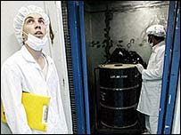 دوازدهم فوريه: با وجود تصميم ايران به لغو همکاری های داوطلبانه با آژانس بين المللی انرژی اتمی، گروه تازه ای از بازرسان آژانس وارد تهران شدند. چهاردهم فوريه: جواد وعيدی، معاون شورای عالی امنيت ملی ايران، آغاز غنی سازی اورانيوم در تاسيسات اتمی نطنز را تاييد کرد. اين در حالی است که ايران اندکی پيشتر مذاکرات اتمی را که قرار بود در مسکو با روس ها پیگيری شود، نيز لغو کرد. بيستم فوريه: مقام های ايرانی به طور همزمان در مسکو و بروکسل با مقام های روس و اتحاديه اروپا ديدار کردند. با وجود ابراز 'خوشبينی' هيئت های ايرانی، طرفين ديگر گفتگوها در مورد نتيجه بخش بودن آنها اظهار ترديد کردند. اين همه در حالی است که کاندوليزا رايس، وزير امور خارجه آمريکا، در ادامه سفر يک هفته ای خود به کشورهای عربی و خاورميانه، وارد مصر شد. هدف اصلی سفر خانم رايس جلب حمايت کشورهای منطقه در رويارويی با ايران و منزوی کردن اين کشور است.