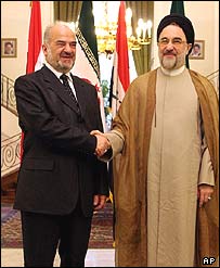با حمله نيروهای ائتلاف به کشور عراق در ماه مارس ۲۰۰۳ميلادی (فروردين ۱۳۸۲ شمسی) روابط و مسايل بين دو کشور ايران و عراق نيز دچار تحولات اساسی شد. اشغال عراق و دستگيری صدام حسين در دی ماه همان سال بار ديگر موضوع حمله اين کشور به ايران را زنده کرد. در موارد متعدد، مقام های جمهوری اسلامی خواستار محاکمه صدام به جرم جنايت جنگی شدند. از سوی ديگر درخواست پرداخت غرامت از سوی عراق به ايران، موردی بود که از پايان جنگ در سال ۱۳۶۷ به دفعات از جانب دولت ايران بيان شده بود. پس از سقوط حکومت صدام حسين، ايران می توانست به پيگيری اين خواسته خود خوشبينانه تر نگاه کند. آنچه در عمل اتفاق افتاد، اما، غير از اين بود. با تشکيل دولت موقت و قدرت گرفتن شيعيان در کشور عراق، روابط ميان دو کشور وارد مرحله تازه ای شد. به نظر می رسيد که دولت جمهوری اسلامی قصد دارد تا حد امکان مساله جنگ با عراق – و دريافت غرامت – را به فراموشی بسپرد و از اين راه حسن نيت خود را به دولت جديد عراق ثابت کند. از سوی ديگر، مقام های عراقی نيز در مناسبت های گوناگون به تقصير صدام در جنگ افروزی عليه ايران اذعان می کردند. حتی سعدون الدليمی، وزير دفاع عراق، در سفری به ايران – در خردادماه ۱۳۸۴ – در کنفرانس مطبوعاتی از جنايات صدام عليه کشورهای همسايه به ويژه ايران عذرخواهی کرد. درست بيست و پنج سال پس از شروع جنگ، در واپسين روزهای تيرماه ۱۳۸۴، ابراهيم جعفری، نخست وزير عراق به تهران سفر کرد تا پس از سال ها با سران کشور ايران ديدار کند. حضور نخست وزير عراق در آرامگاه آيت الله خمينی، نشان بسيار روشنی بود از تحول مناسبات دو کشور همسايه و از دوستی نوپای دشمن های پيشين. |