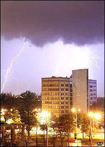 شبی طوفانی همراه با رعد و برق در شهر مينسک، بلاروس. پيش از آغاز طوفان دمای هوای اين شهر در طول روز به 30 درجه سانتيگراد رسيده بود.