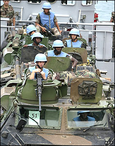 گروهی از سربازان فرانسوی که برای پيوستن به نيروهای حافظ صلح سازمان ملل متحد وارد بندر ناقوره اين کشور می شوند. به دنبال درخواستها برای افزايش مشارکت نيروهای فرانسوی و اتحاديه اروپا، اين نخستين نيروی تقويتی است که به نيروهای حافظ صلح سازمان ملل متحد در لبنان می پيوندند.