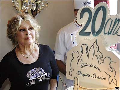 بريجيت باردو، هنرپيشه دهه شصت ميلادی که مدافع حقوق حيوانات شده است، بيستمين سالگرد بنيادی را که با اين هدف بنا نهاده، جشن می گيرد.