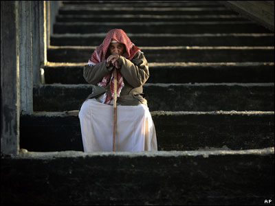 روز دوشنبه در فلسطین عید فطر اعلام شد. مردی فلسطينی در حال انتظار برای شرکت در مراسم نماز عيد فطر در نوار غزه.