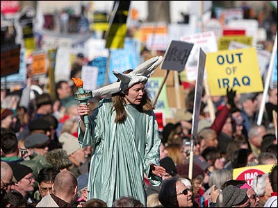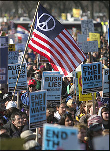 در تظاهراتی گسترده در واشنگتن دهها هزار نفر به سياست دولت آمريکا اعتراض کردند و خواهان خروج سربازان آمريکايی از عراق شدند.