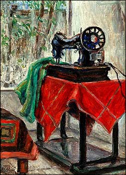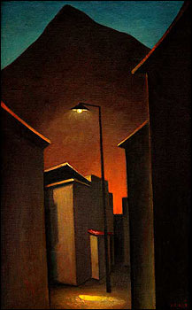 غلبه رنگهای گرم در زمينه های سايه و تاريک و مات و يا تصاوير حاشيه ای که در کنار موضوع اصلی قرار می گيرد، زيبايی های زندگی و شوق حرکت را بر آن غلبه می دهد. اين موضوع را در ملاقات مرد گل به دست در عيادت بيمار، در تابلوی چرخ خياطی و ماهی ديده می شود. تابلويی که در خلوت کوچه ای جوی آب در ميان آن جاری است يا قريه ای که ريل راه آهن از ميان می گذرد اين موضوع مشاهده می شود.