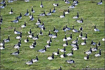 اما در واقع علت غازهای صدفی در تابستان به سوی قطب شمال مهاجرت کنند. مهاجرت آنها به وسيله ماهواره از روی حلقه هايی که به پايشان بسته شده، مشخص می شود.