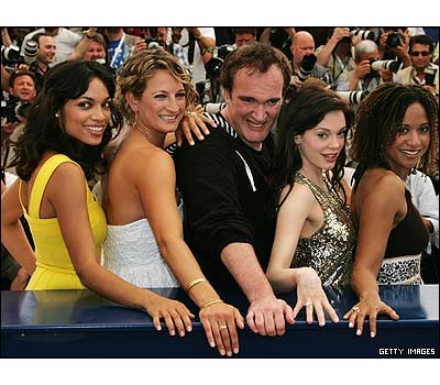 کوئنتين تارانتينو و بازيگران تازه ترين فيلمش که "ضد مرگ" نام دارد.