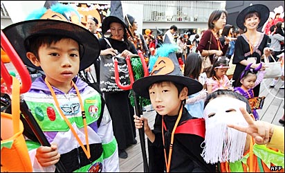 در آن زمان اسم اين روز رو All saints day ( روز همه قديسين ) می ناميدند. اين روز کم کم شب شد و قديسين هم به ارواح تبديل شدند. بنابراين اسم اين روز شد ( All hallows eve ) و بعدها کم کم شد هالووين ( Halloween ). بعدها همين مراسم با مهاجرت ايرلندی ها به آمريکا، به اونجا رفت. توی اين جشن برای ترسوندن ارواح خبيس لباس ترسناک می پوشند. اين روزها هالووين بيشتر مال بچه هاست. اونها ماسک های ترسناک و عجيب غريب می زنن و برای گرفتن شيرينی و شکلات به در خونه همسايه ها ميرن. بعضی وقت ها هم قصه های ترسناک برای هم تعريف می کنن. يک داستان ترسناک