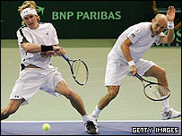 قهرمانی تیم آمریکا در مسابقات تنیس جام دیویس سال 2007 با پیروزی باب و مایک برایان در مسابقه دونفره قطعی شد. این دو برادر در سومین مسابقه فینال جام دیویس که در سالن مموریال کالیزیوم شهر پورتلند در ایالت اورهگون برگزار شد، ایگور آندرییف و نیکولای داویدنکو را در سه ست شکست دادند تا در مجموع آمریکا 3-0 از روسیه پیش بیفتد و روسیه امکان تغییر سرنوشت قهرمانی را نداشته باشد. در روز اول فینال، جیمز بلیک و اندی رادیک هردو مسابقات انفرادی خود را مقابل حریفان روس برنده شدند تا آمریکا 2-0 از تیم مدافع عنوان قهرمانی پیش بیفتد. افسانه دو برادر! برادران برایان که تاکنون پنج عنوان گرند اسلم دونفره را برده اند، در فصل جاری جام دیویس در 13 مسابقه ای که پیش از فینال انجام دادند تنها یک بار شکست خورده بودند. آنها مسابقه فینال را با نتایج 7-6 (7-4)، 6-4 و 6-2 بردند. باب و مایک برایان در تای برک در ست اول 3-1 از تیم روسیه عقب بودند اما تکرار اشتباه از سوی آندرییف به آنها امکان داد تای برک را با پیروزی پشت سر بگذارند. در ست دوم، روسیه مغلوب شروع کرد و پس از آنکه بازیکنان آمریکا سرویس داویدنکو را در گیم اول شکستند و گیم دوم را هم به لطف در اختیار داشتن سرویس بردند، کار تمام شده بود. "چهار سال برنامه ریزی" باب برایان پس از مسابقه گفت: "از سال 2003 برنامه ما بردن جام دیویس بود، اما حتی تصورش را هم نمی کردم که این کار را پیش روی تماشاچیان خودمان انجام بدهیم." "ما می دانستیم که تای برک در پایان سوت اول بسیار حساس است چون روی این زمین شکستن سرویس راحت نیست." "اما حالا می توانیم با خوشحالی و رضایت بمیریم - دستاوردهای حرفه ای ما تکمیل شد."
