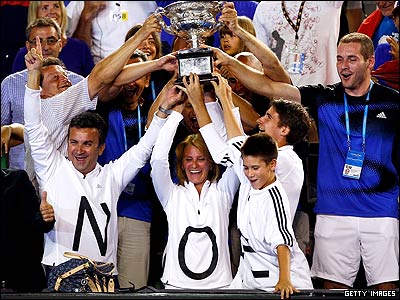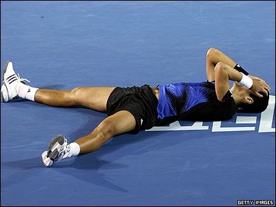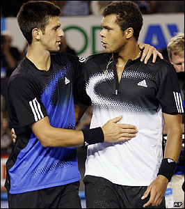 نواک جاکوویچ، تنیس باز 20 ساله صرب، پس از ناکامی در 12 گرند اسلم، با قهرمانی در تنیس آزاد استرالیا اولین گرند اسلم خود و یک تنیس باز صرب را به دست آورد. جاکوویچ در فینال این مسابقات در چهار ست ژو ویلفرید سونگا را شکست داد که در جمع فهرست رسمی امید داران قهرمانی در این مسابقات قرار نداشت. با این وجود جاکوویچ در نیمه نهایی راجر فدرر تنیس باز شماره یک، و سونگا نادال تنیس باز شماره دو مردان جهان را شکست دادند تا در فینال رو در روی یکدیگر قرار گیرند.