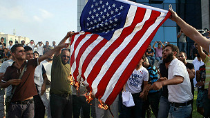 به آتش کشیدن پرچم آمریکا در مصر در اعتراض به فیلم توهین آمیز به پیامبر اسلام