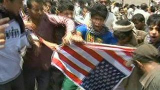 تظاهرکنندگان در صنعا، پایتخت یمن، در مقابل ساختمان سفارت آمریکا جمع شده و به آن حمله کردهاند.
