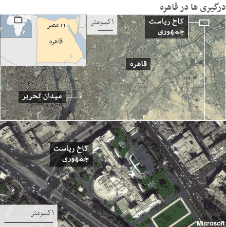 درگیری بین مخالفان و هواداران رئیس جمهوری مصر چندین کشته و زخمی برجای گذاشته و همزمان با اعلام کناره گیری شماری از مشاوران رئیس جمهوری، گزارش های خبری حاکی از استقرار تانک و خودروهای زرهی در اطراف کاخ ریاست جمهوری است.
