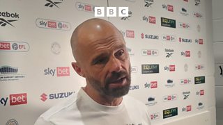 Paul Warne reacts after MK Dons beat Crewe Alexandra 3-1 in League Two.