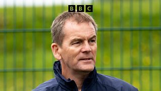 Accrington boss John Doolan reacts to defeat away at Colchester United.