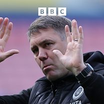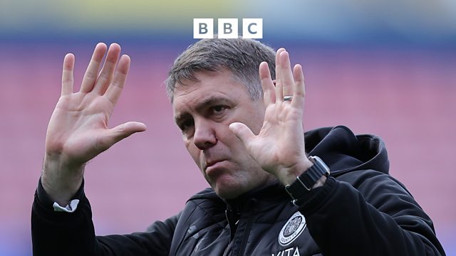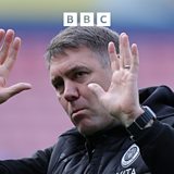 Dave Challinor reacts to Stockport's 3-1 loss to Luton at Wembley in the EFL Trophy Final.