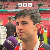 Liam Walsh reacts after Luton win the EFL Trophy 3-1 against Stockport County.