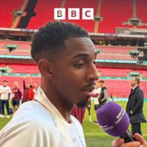 Isiah Jones reacts after Luton win the EFL Trophy 3-1 against Stockport County.