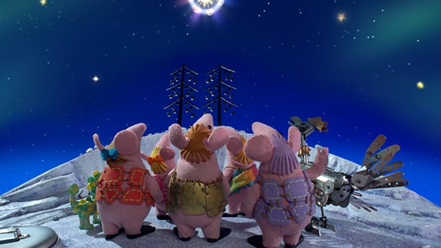 Small, wearing a rainbow-striped scarf, catches seven coloured stones floating in space. The Iron Chicken has also found a strange metal disc in space. Do the stones and the disc somehow fit? The answer lies in the colours of the scarf.
