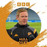 Hull City assistant head coach Dean Holden speaks to Mike White after the side's 2-2 draw at Leicester City in the Championship.