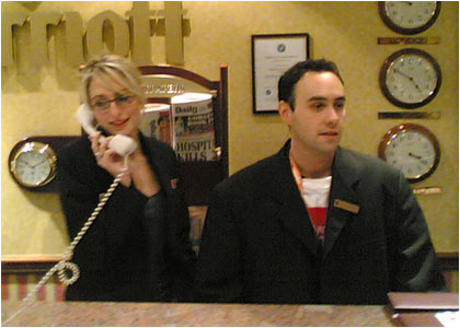 (1/19) Tuesday - Aled works the reception desk at our hotel