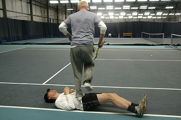 Here are the pictures from the first of our Friday sport series - The Chris and Jonny Challenge. Each week, we'll pit the pair against each other. Getting them to try their hand at a different sport or game. Who will become the ultimate victor? To start, we booked a court and set the boys three tennis-themed challenges: a short-form game that could only take place in half of the court, a serving challenge and a full set of tennis. And so it begins.\n\nWho won? The pictures will tell you...