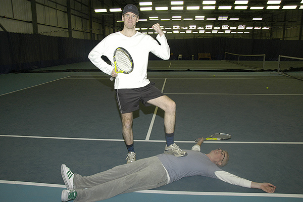 Here are the pictures from the first of our Friday sport series - The Chris and Jonny Challenge. Each week, we'll pit the pair against each other. Getting them to try their hand at a different sport or game. Who will become the ultimate victor? To start, we booked a court and set the boys three tennis-themed challenges: a short-form game that could only take place in half of the court, a serving challenge and a full set of tennis. And so it begins.\n\nWho won? The pictures will tell you...