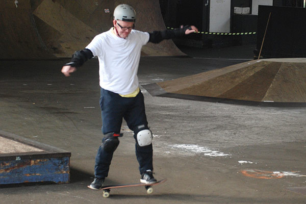 Chris finds his balance on the skateboard