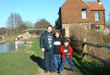 Leo, Josie and Jordi in front of a lock-keeper's cottage
