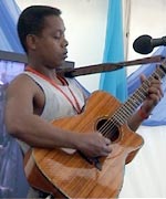 Watch (1'43) a video of Modeste's set in the World on your Street Tent, Womad 2002.