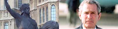 |  | Jonathan Freedland looks for the past behind the present. Each week, The Long View, recorded on location throughout the British Isles, takes an issue from the current affairs agenda and finds a parallel in our past. Have you got a good subject for a future programme? Click here to make your suggestion. |  |  |  Statue of King Richard 1 of England and President George Bush. |