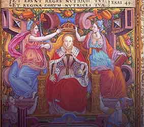 |  Miniature of Queen Elizabeth 1, crowned by angels, presiding over Archbishop Parker preaching. Reproduced courtesy of the Master and Fellows of Corpus Christi College, Cambridge. Visit the Parker Library. | In some areas monastic lands were seized and enclosed, sometimes with disastrous consequences for the rural poor. Most towns changed dramatically as the abbeys and other religious foundations, once great centres of wealth and employment, were closed down. The parish churches remained in place but their more decorative features were destroyed, as were many statues and images. Chantries (often priest's chapels) were dissolved and, as they had enabled the living to intercede for the souls of the dead, their dissolution seemed to threaten the medieval conviction that the dead and the living remained intimately connected.