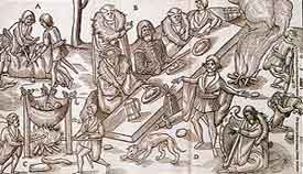 |  Ireland at the time of the Spanish Armada: an Irish chief entertained by a bard and harper - from a series of woodcuts from The Image of Irelande by John Derrick, 1581. | The plantation period the programme analyses is the half century between the Tudor conquest of Ulster in the 1590s to the rebellion of the Ulster Irish in 1641.
