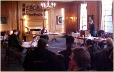 | The audience listens to the "pro" case. |