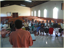 The Reverend George Campbell of the Full Gospel Church of Kenya in Narok preaching to the runaway girls. He says some parents have come to his church and threatened to kill him with their spears if he doesn't let them take their daughters home to be circumcised.
