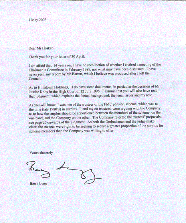 Barry Legg wrote a letter to Today explaining his defence on both the asbestos and the pensions affairs.