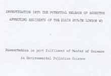 Among the more interesting is a Masters thesis about the tower blocks prepared by Graham Farrant, while he was a senior environmental health officer working for Westminster City Council. We have a copy of the thesis, entitled: "Investigation into the potential release of asbestos affecting residents of the Elgin Estate, off Chippenham Road, London W9". Mr Farrant worked for the Housing Department of Westminster City Council when homeless people were being moved into the tower blocks, Hermes and Chantry Points, which were on the Elgin Estate, off Chippenham Road, London W9. Click on the document on the right hand side to see what he said.