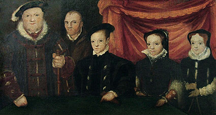 The picture depicts Henry VIII and his three children, with Will Somers, his famous jester, standing in the background. On the extreme right of the picture, furthest away from her father (and, as BBC History Magazine explains, by implication, from the throne itself) is the teenage Princess Elizabeth.
