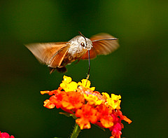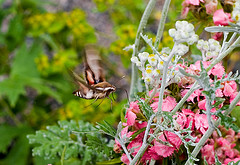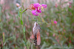 Humming-bird Hawk-moths are amazing animals, which hover like tiny hummingbirds to drink nectar from flowers. They migrate to Britain from North Africa and southern Europe in May and June. They are able to breed here during the summer months but traditionally have not been able to survive our winters. This is changing and the Humming-bird Hawk-moth is an excellent indicator of the effects of climate change on our native wildlife
