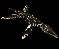 Liopleurodon was the mightiest aquatic predator of all time. Its 25 metre long body would have cruised silently through the shallow seas of the late Jurassic, propelled by its flapping flippers. Liopleurodon was a hunter. Its long jaws and rows of needle-sharp teeth would have made marine crocodiles, the giant fish Leedsichthys, ichthyosaurs and even other pliosaurs vulnerable to attack. Liopleurodon's nose allowed it to smell underwater. This allowed Liopleurodon to smell its prey from some distance away. Despite needing to breath air, Liopleurodon spent its entire life at sea and was unable to leave the water. Consequently, it would have given birth to its young alive and may have visited shallower water to breed. Until recently the longest confirmed adult specimen was 18 metres. But in 2003 a fossil pliosaur (possibly a Liopleurodon) was discovered in Mexico which was 18 metres long and still a juvenile - suggesting that they grew considerably larger than this. |