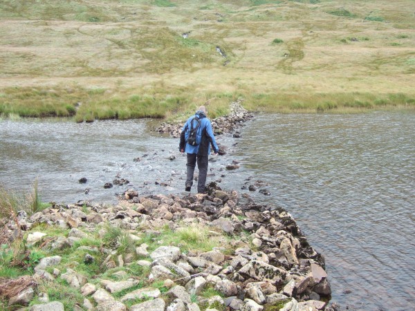 From this point, just south east of the dyke, we needed to head down to the estate road. It got rather interesting at this point. There are several small streams to cross. Normally, these are a doddle. Not today. Because off all the heavy rain, they were seriously swollen and were actually a very good illustration of the dangers that can exist in the hills at any time of year (its supposed to be summer in mid August...) However with a bit of care we got down OK