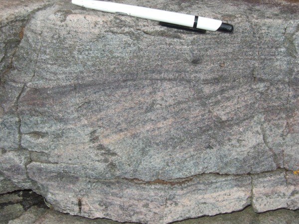 Heading back the way,the psammites show very clearly their sedimentary origin. The various layers are very obvious: